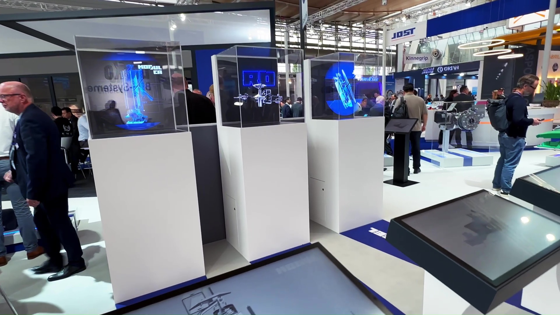 Ein zentrales Highlight des Messeauftritts sind unsere Hologramm-Stationen, die den Besucher:innen ein neuartiges, interaktives Erlebnis bieten. Über die Touchscreens können sie die Produkte von JOST und ROCKINGER – darunter Sattelkupplungen, Stützwinden, Kugellenkkränze und Anhängerkupplungen – als 3D-Modelle in beeindruckender Klarheit und Detailtiefe betrachten.