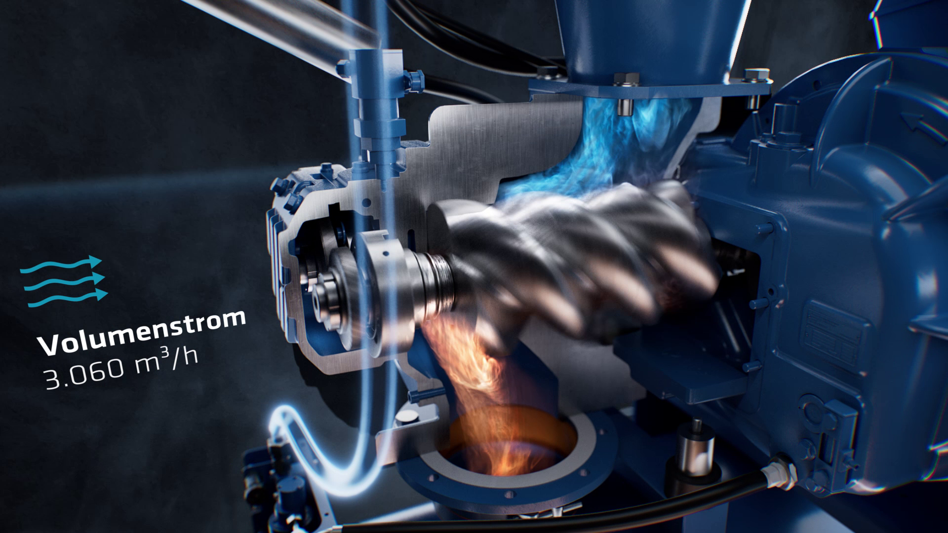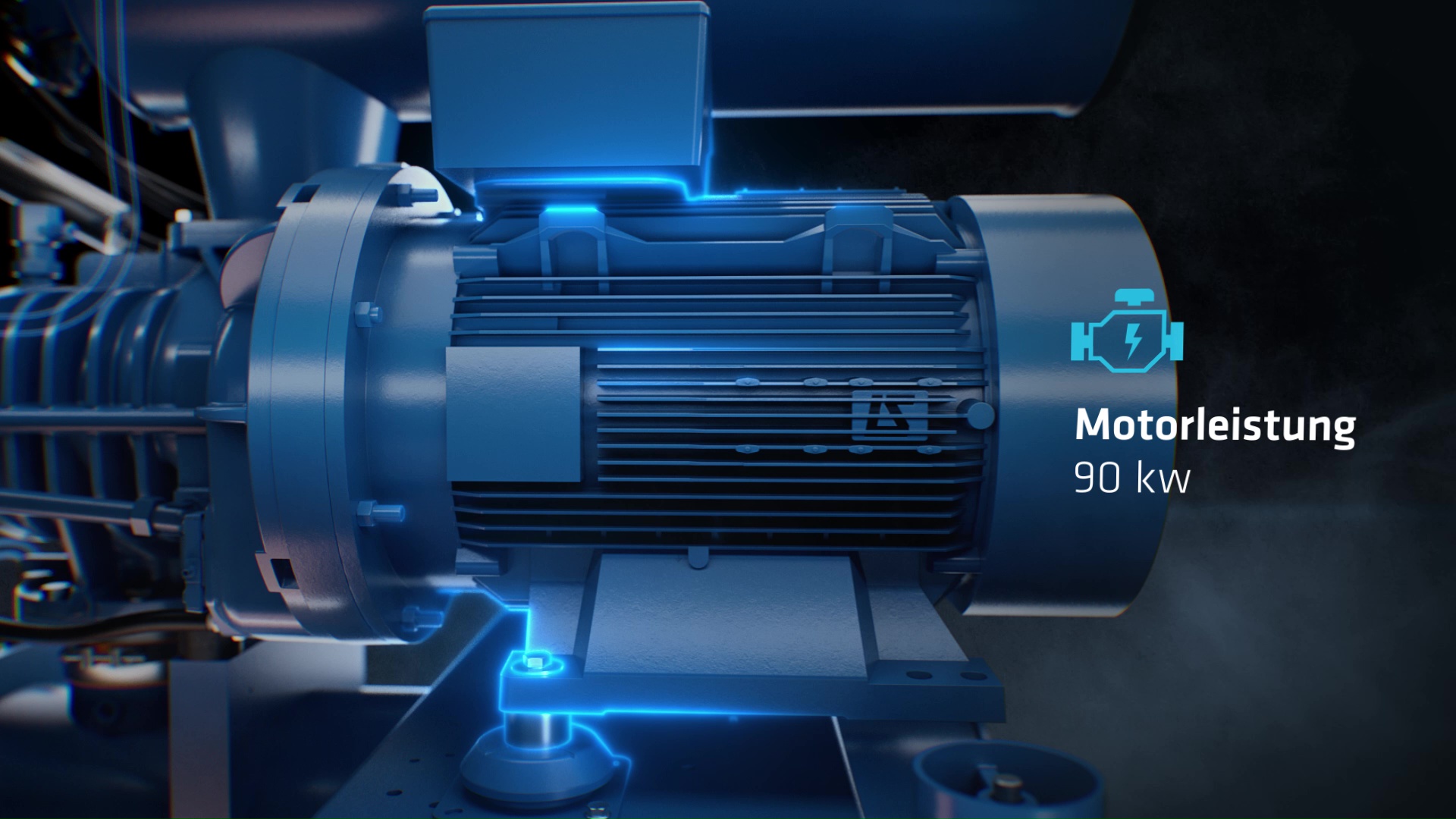 Der Film setzt auf eine Inszenierung, die eher an ein präzise ausgeleuchtetes Maschinenporträt erinnert als an eine klassische Produktanimation. In einer dunklen Halle, durchzogen von gezielten Lichtakzenten, wird das Produkt selbst zum Protagonisten. Dynamische Kamerafahrten umkreisen das Gebläse, wechseln zwischen Totalen und extremen Nahaufnahmen und betonen so gleichzeitig die Kraft der Gesamtform und die Präzision im Detail. Die Kombination aus Licht, Schatten und Bewegung schafft eine Atmosphäre, in der Robustheit und Eleganz gleichermaßen sichtbar werden.